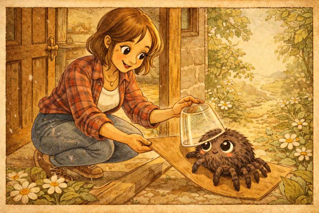 We can also embrace spiders as something positive when we learn how much good they are actually doing for the environment and keeping insects at bay. Check this blog post out and learn how spiders are just as important for the environment as the bees! We need spiders to survive. Understanding this can help build compassion and inspiration to help them get back outside where they belong.